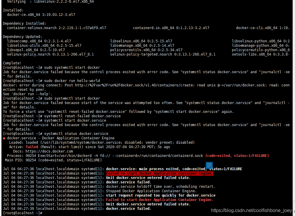 解决:网上找了下,说是/etc/docker/daemon.json里的内容不对,我试了官网配置的阿里云配置都不行。目前文件内容如下: