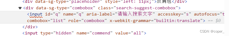 id是唯一的,所以根据id定位元素只会返回一个值。例如这个是搜索框的元素。