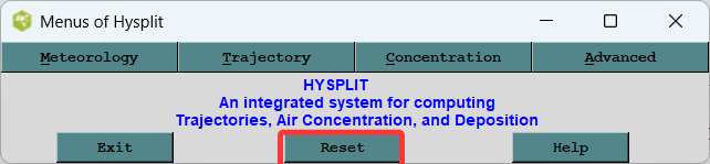 我们在使用Hysplit软件时,总是不停的在改参数,通常忘了原参数,可以通过reset命令初始化软件参数