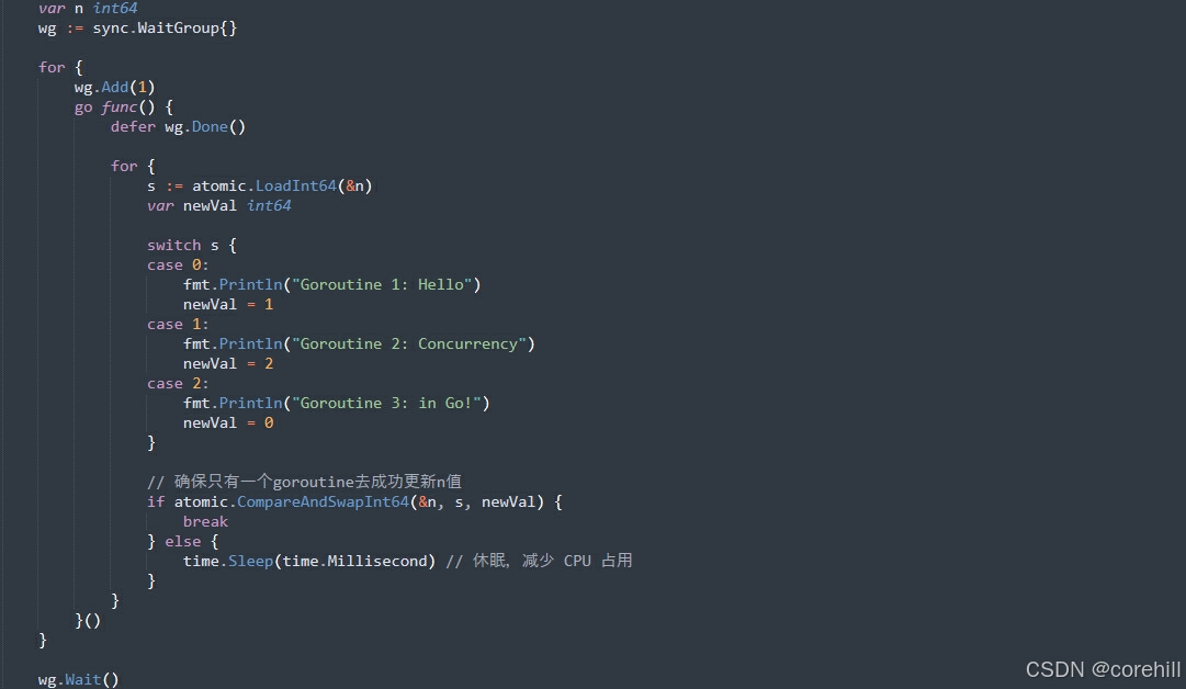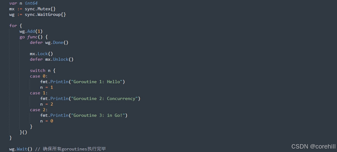 - Mutex的方式虽然能防止协程同时进行,但是他并不能强制执行(1 → 2 → 3 → 1 → 2 → 3).的顺序