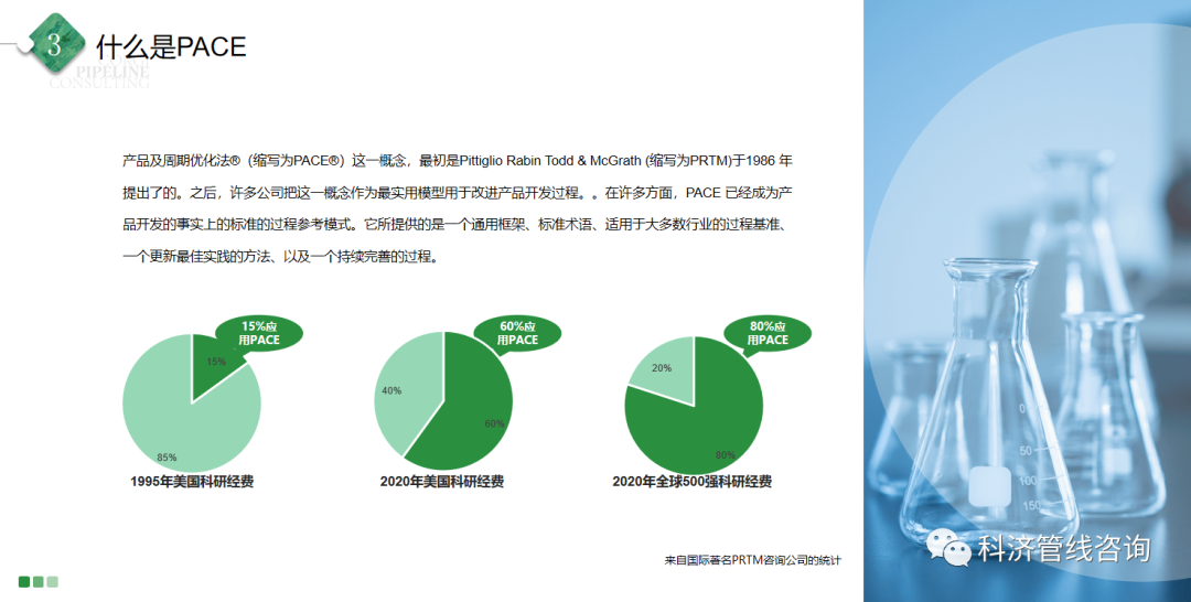 在分享中,江教授深入浅出地分析中国医药行业目前的发展趋向及现状,其中他提到,要了解一个行业的未来,最重要的就是了解市场需求。其次我们研发方面上需要跟上市场的变化,简单举例,现在国家针对仿制药进行集采,如果研发周期、研发成本无法降低就意味着会被市场逐步淘汰。为什么至今为止世界药企营收前十,美国药企就占了8家;因为他们都在使用PACE(产品及周期优化法)理论来管理研发经费,这套体系是全美科研经费应用超过60%,世界五百强应用超过80%的世界级体系。PACE后经由IBM发展总结变成了IPD。
