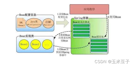 (14)此时Bean就可以使用了,如果调用者使用的是单例bean(singleton,Spring默认的方式),则从Spring的缓冲池中将准备好的bean返回给调用者,如果配置的是多例(prototype),则将准备好的Bean返回给调用者
