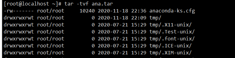基本格式为:[root@localhost ~]#tar [选项] 压缩包 源文件或目录