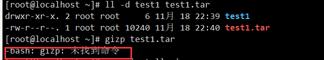 打包并压缩目录,gzip命令会把test1.tar压缩成test1.tar.gz