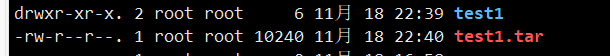 打包目录,把目录打包成test1.tar