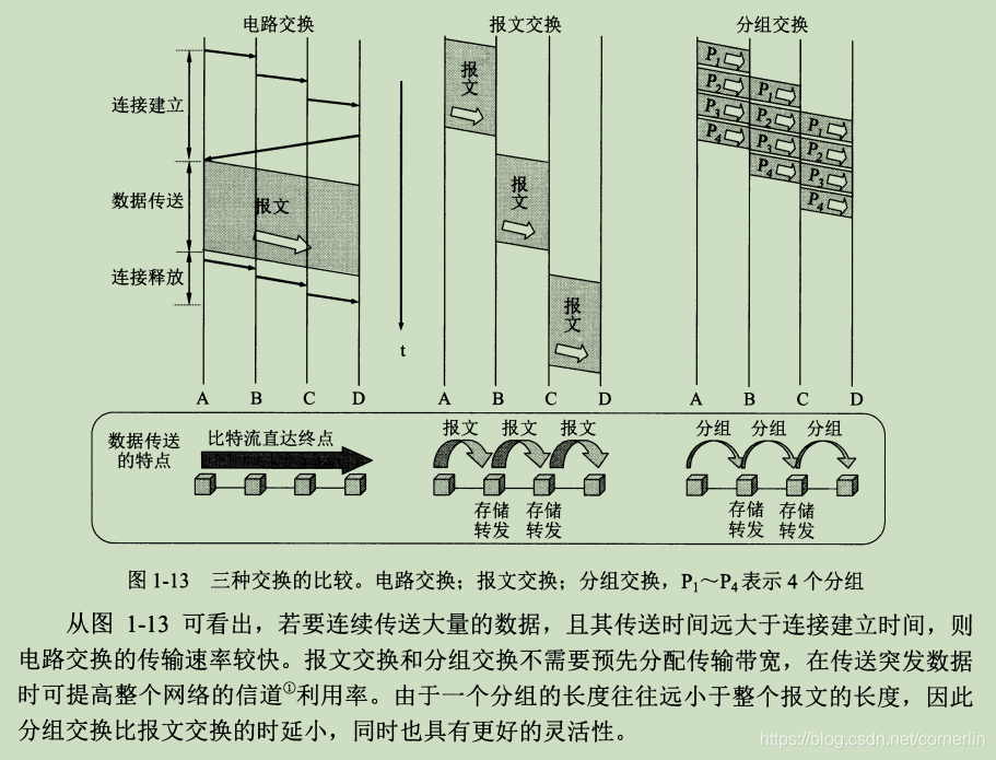 1、建立连接(占用通信资源)----->通话(一直占用通信资源)------->释放连接(归还通信资源) 三个步骤的交换方式称为“电路交换”