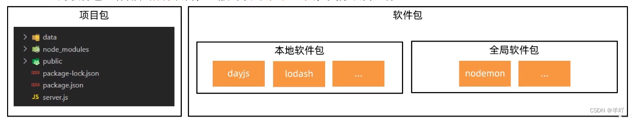 软件包:封装工具和方法进行使用的文件夹(一般使用npm管理)