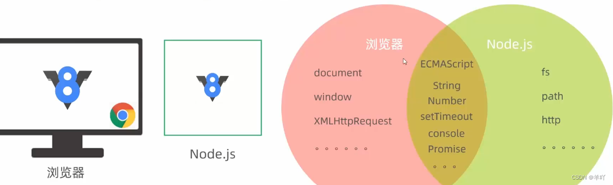 浏览器能执行JS代码,依靠的是内核中的V8引擎(c++程序)。Node.js是基于Chrome V8引擎进行封装(运行环境)