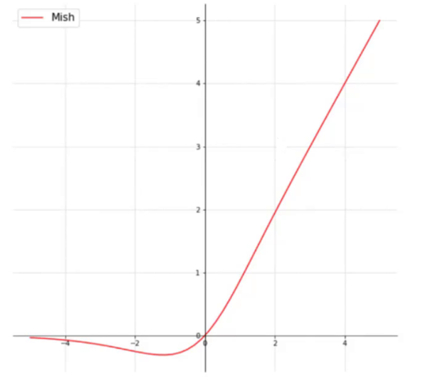 - 图示解读:右侧函数曲线直观展示了 Mish 的平滑特性,其在负数区间仍有非零输出,体现了 “给改过自新机会” 的设计理念,与 ReLU 的绝对截断形成鲜明对比。