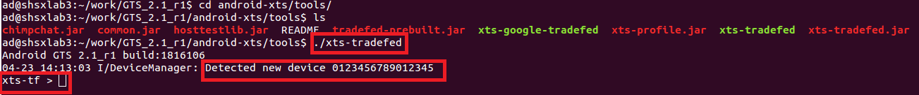 1. Google官网下载最新的GTS测试包,解压到你的Linux电脑上,连接手机,通过adb device检测手机是否连接至电脑。