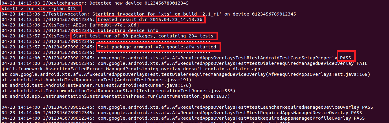 4. 之后再控制台输入”run xts --plan XTS” 可以run全部的GTS packages,run起来之后会首先穿件存储结果的文件夹,之后才开始run package,如图3所示。