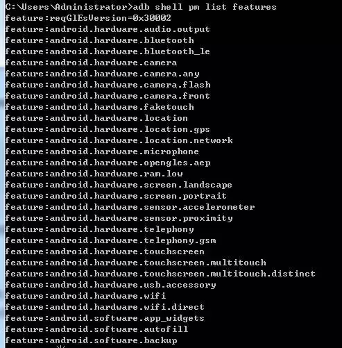 adb shell pm list features