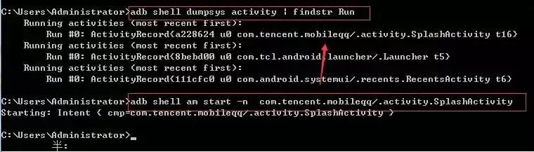adb shell dumpsys activity | findstr Run