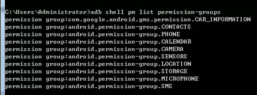 adb shell pm list permission-groups