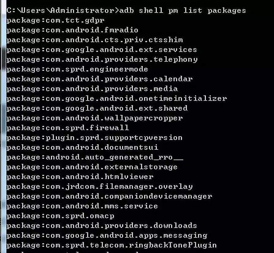 adb shell pm list packages
