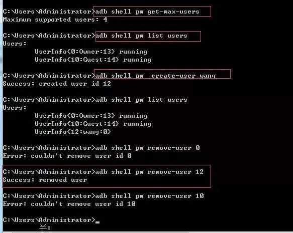 移除指定id用户adb shell pm remove-user user_id
