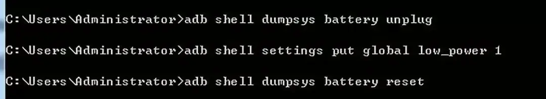 adb shell settings put global low_power 1