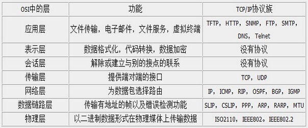 1.2 在OSI七层模型中,每一层的作用和对应的协议如下:
