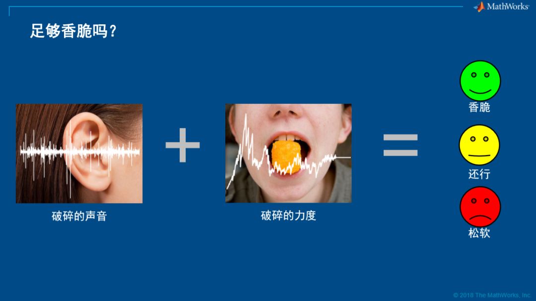 他发现人在咬这个膨化食品之后有两个参数,我们可以采集。一个是声音,酥脆的声音。另一个就是牙齿咬的力度,他根据这两个参数来做机器学习。