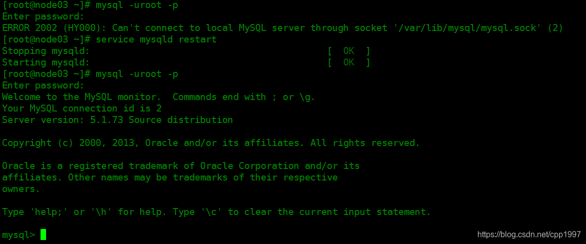 ERROR 2002 (HY000): Can't connect to local MySQL server through socket '/var/lib/mysql/mysql.sock' (2)