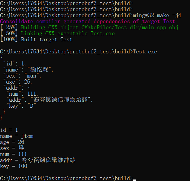 # 链接 libprotobufd.dll 库到 Test 可执行文件