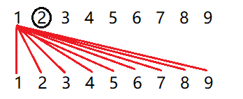 如图,在进行 222 这个值的比较时,因为此前的 111 已经和 222 比较过,因此 222 无需再和之前的元素比较。