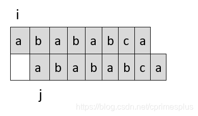 j = next[j]; // 如果不满足前缀后缀匹配,则将j跳转到前面next指定的位置