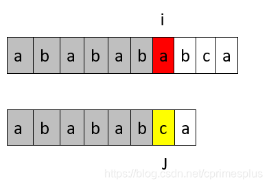 我们可以举个极端的栗子,有目标串 “abbababca” , 待匹配的模式串 “abababca”,想要对这个模式串进行匹配,那么最初的匹配效果如下图: