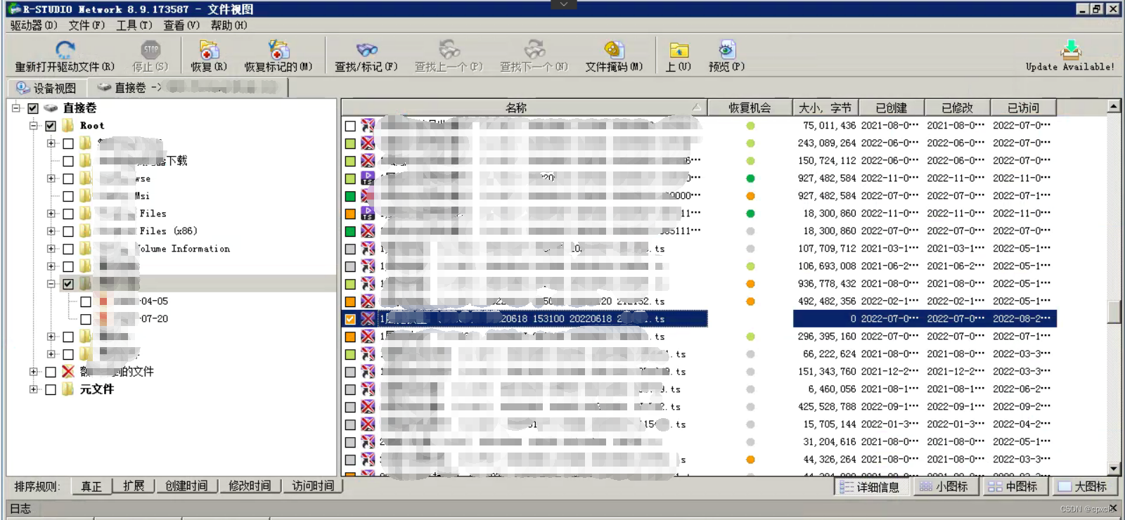 但是问题就出在这些文件删除后,又做过写入操作,覆盖已经产生。新写入的文件会对删除文件的$MFT以及数据区造成威胁。但是由于删除文件数量和容量都比较大,而且后期写入文件数量不多且容量也不大,所以此文件的恢复还是有机会的。先用RStudio进行扫描,这个软件针对文件系统类的扫描效果还是不错的,像NTFS可以把$MFT、INDEX、LOG都全部扫描。但是扫描后却发现,能找到客户指定的文件名,但是此文件大小长度为0字节。