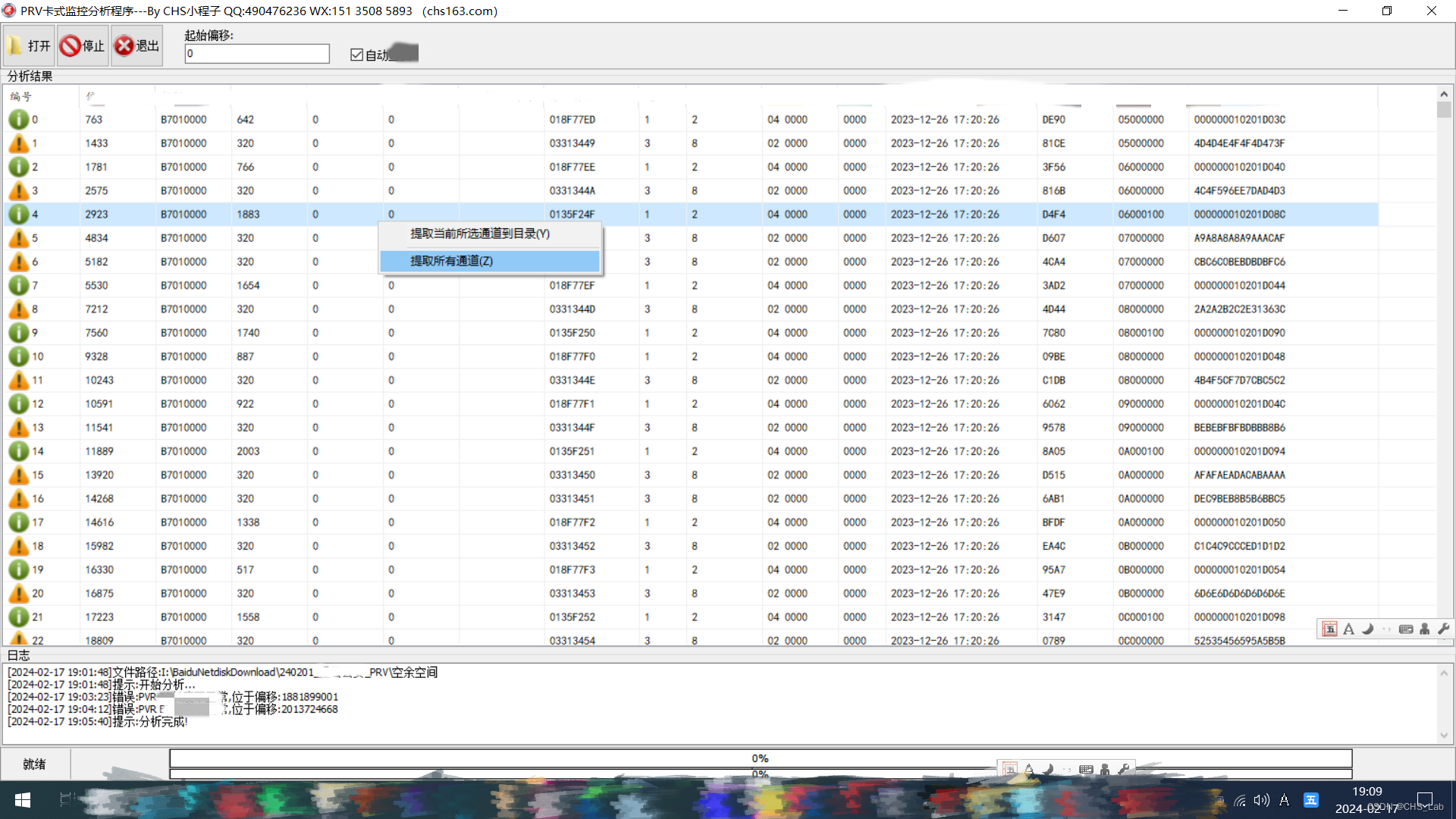 整合以上分析结果,先用WINHEX提取了2.2G的空闲空间,然后写了一个小程序对文件中的数据块进行分离和重组,最终成功找到客户需要的共21条视频文件。