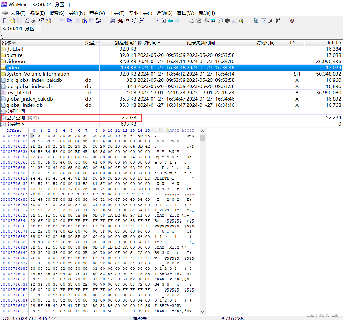 图1:卡的剩余空间还有2.2G,属于典型的循环写入不断覆盖的方案