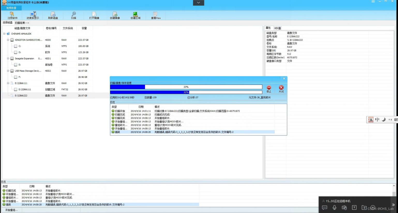 由于FAT表已经“挂”掉了,所以重建DBR之类就显的没任何意义了,所以直接使用CHS零壹视频恢复程序专业版进行扫描即可