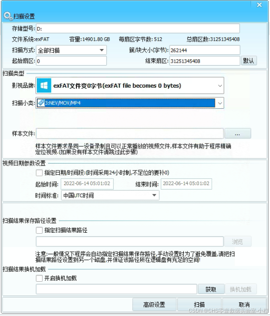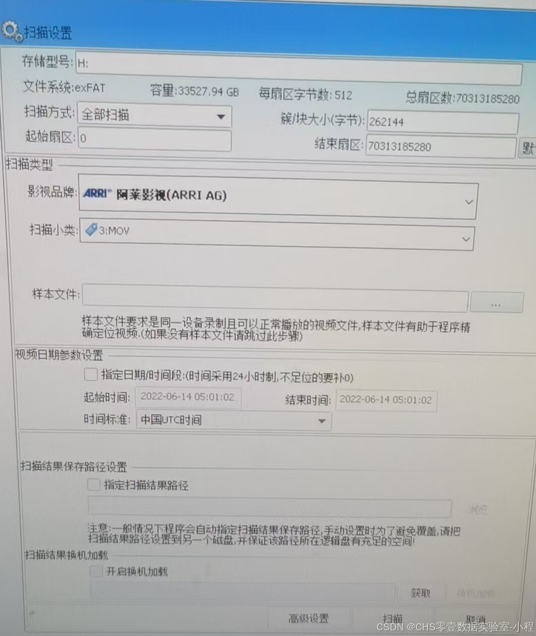 之前此类问题都是使用高级版来进行底层RAW级视频碎片扫描和重组,虽然能解决问题,但是由于这一类硬盘容量较大(动辄8T/16T/32T)这样导致扫描时间过长。CHS工程师在长期恢复这类数据的基础上不断总结经验并不断优化算法,目前发布的CHS零壹视频恢复程序影视版已经支持了”exfat文件变0字节“的恢复功能,此功能扫描速度极快,所以直接使用影视版扫描即可!