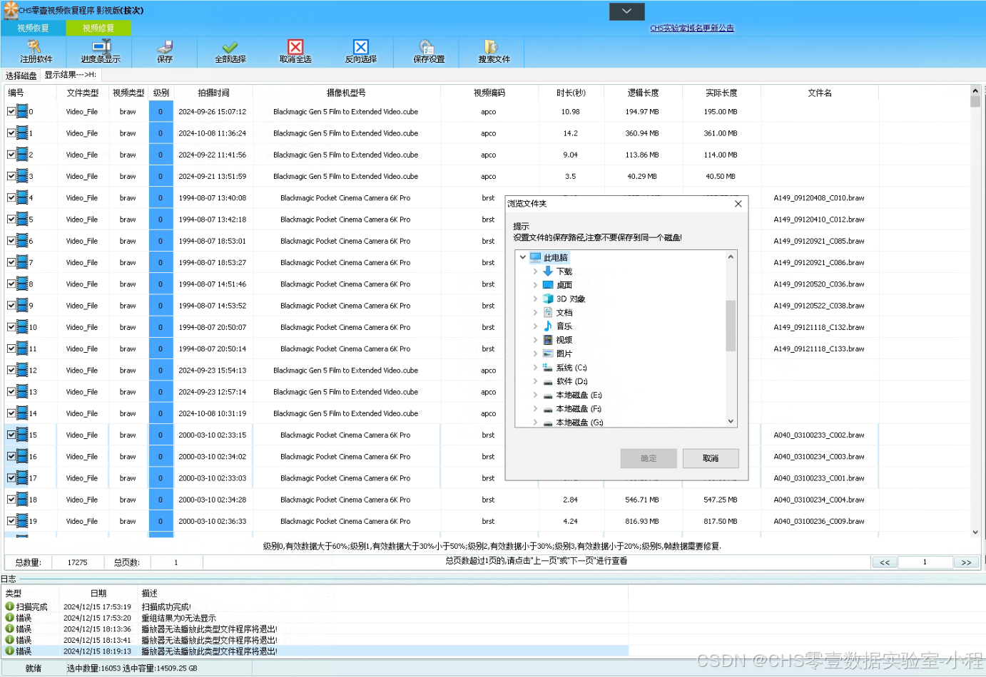 CHS零壹视频恢复程序影视版,是CHS数据实验室的工程师们总结多年影视类视频恢复经验的基础上开发的影视级专业视频恢复程序,影视版的成功案例或者使用方法可以关注CHS零壹数据实验室相应的视频号。