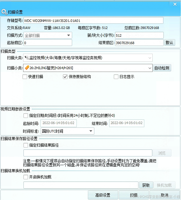 监控类的恢复可以使用CHS零壹视频恢复程序监控版、专业版、高级版来扫描,这里我们使用监控版来扫描。