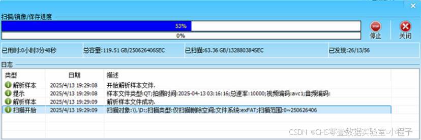 STEP2:等待扫描完成,添加样本后程序会解析样本文件的各种参数(类型/拍摄时间 /速率/编码等),这些参数可以助力扫描算法精确定位同参数的视频文件。