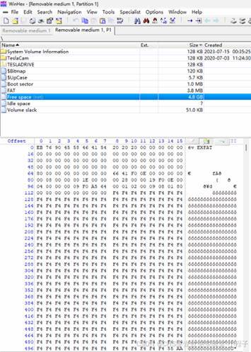 行车记录仪的出现解决了汽车行驶时音视频的采集问题,相对于第三方独立的行车记录仪品牌,主机厂自带的记录仪相对要更全面一些,特别是一些电动车品牌。而特斯拉(Tesla)的行车记录仪绝对的“鹤立鸡群”,比如大名鼎鼎的“哨兵模式”,其摄像头覆盖范围基本上是全车无死角,你需要做的就是仅仅提供一个存储设备(比如U盘)就可以了。行车记录仪在方便大家的同时也会面临数据安全问题,因为存储设备是处于读/写(R/W)状态之下,下面我们来看下特斯拉行车就仪删除视频的恢复方法。