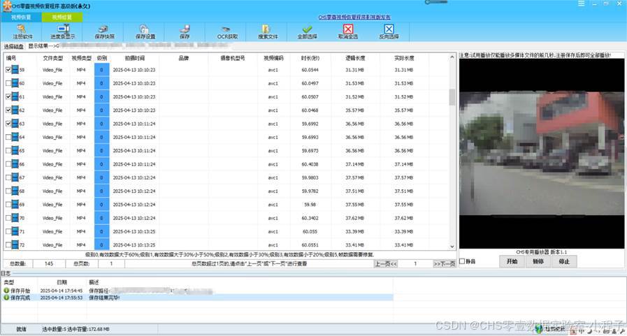 STEP3:扫描完成后直接查看数据,可以看到高级版已经列出了视频类型、级别、拍摄时间、摄像机型号、视频编码、时长、长度等参数,这些参数为查找数据提供了便利。经过对比成功恢复了需要的视频文件,至此恢复工作完成!(关于文件级别可以参考公众号或者博主的相关帖子)