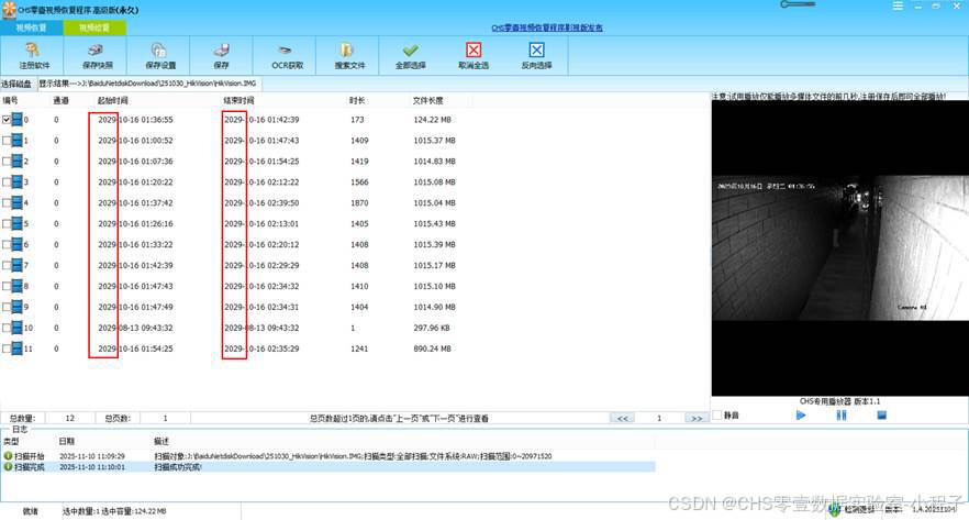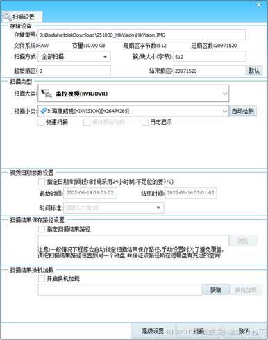 多数情况下使用CHS零壹视频恢复程序扫描安防监控并不需要额外的设置,下面来说一个比较特殊的情况:日期异常导致程序无法发现视频文件。