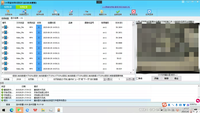 图5:CHS零壹视频恢复程序高级版扫描结果