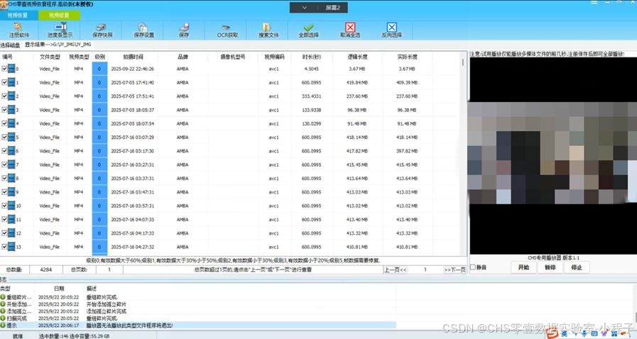 STEP3:扫描完成后直接查看数据,可以看到程序已经列出了视频类型、级别、拍摄时间、摄像机型号、视频编码、时长、长度、等参数,这些参数为查找数据提供了便利。程序共计发现了146条视频素材文件,容量约55.29GB,经过和客户核对这些正是格式化前的视频文件。