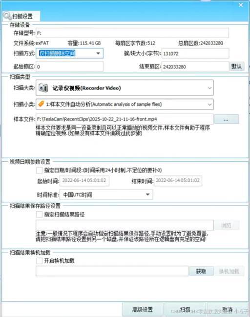 特斯拉(Tesla)行车记录仪的恢复可以使用高级版来扫描,操作方法也很简单。