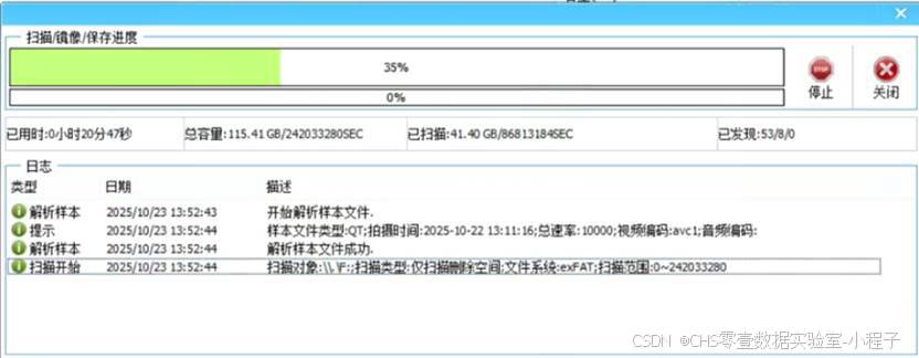 STEP2:等待扫描完成,添加样本后程序会解析样本文件的各种参数(类型/拍摄时间 /速率/编码等),这些参数可以助力扫描算法精确定位同参数的视频文件。