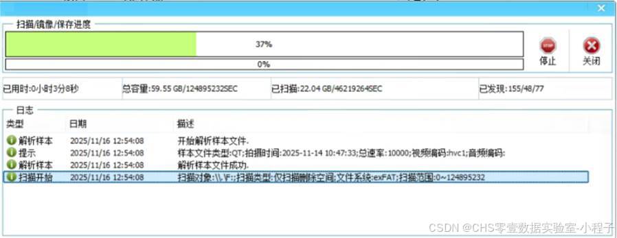 STEP2:等待扫描完成,添加样本后程序会解析样本文件的各种参数(类型/拍摄时间 /速率/编码等),这些参数可以助力扫描算法精确定位同参数的视频文件。