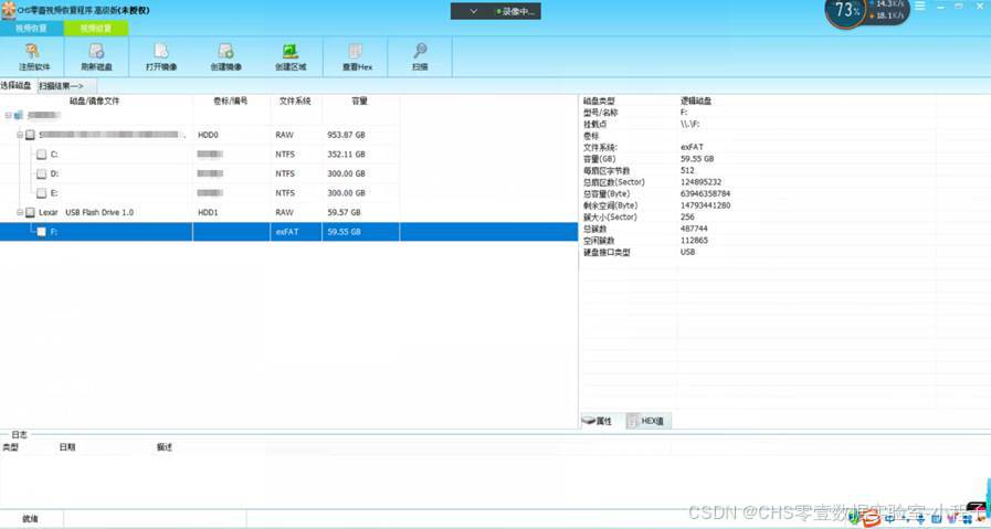 STEP1:选择要扫描的逻辑盘(图6)点击右键->扫描大类选择“记录仪”->扫描方式选择“仅扫描删除空间”->扫描小类选择“样本文件”,添加样本文件后点击“扫描”即可。