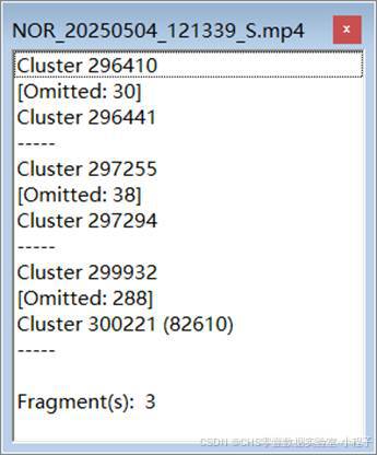 理想(Li)车机中的行车记录仪至少是前/前下/后/左/右五路采集,这种传输的数据量是比较大的,这就导致了文件存储时排队写入产生了“碎片”(图3)。而删除后又存在覆盖的可能性,所以在数据丢失时正确的操作方法是“断开存储设备和车机的物理连接”。