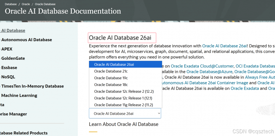 ORACLE真的变化快呀,从最开始发出来的oracle 23c,到去年51的oracle 23ai,再到10月份发布的ORACLE ai DATABASE 26ai, 看来和中国有渊源,都是在中国的节假日左右发布新版本,我还在等OP版本呢,看来OP版本,又要等一段时间了。