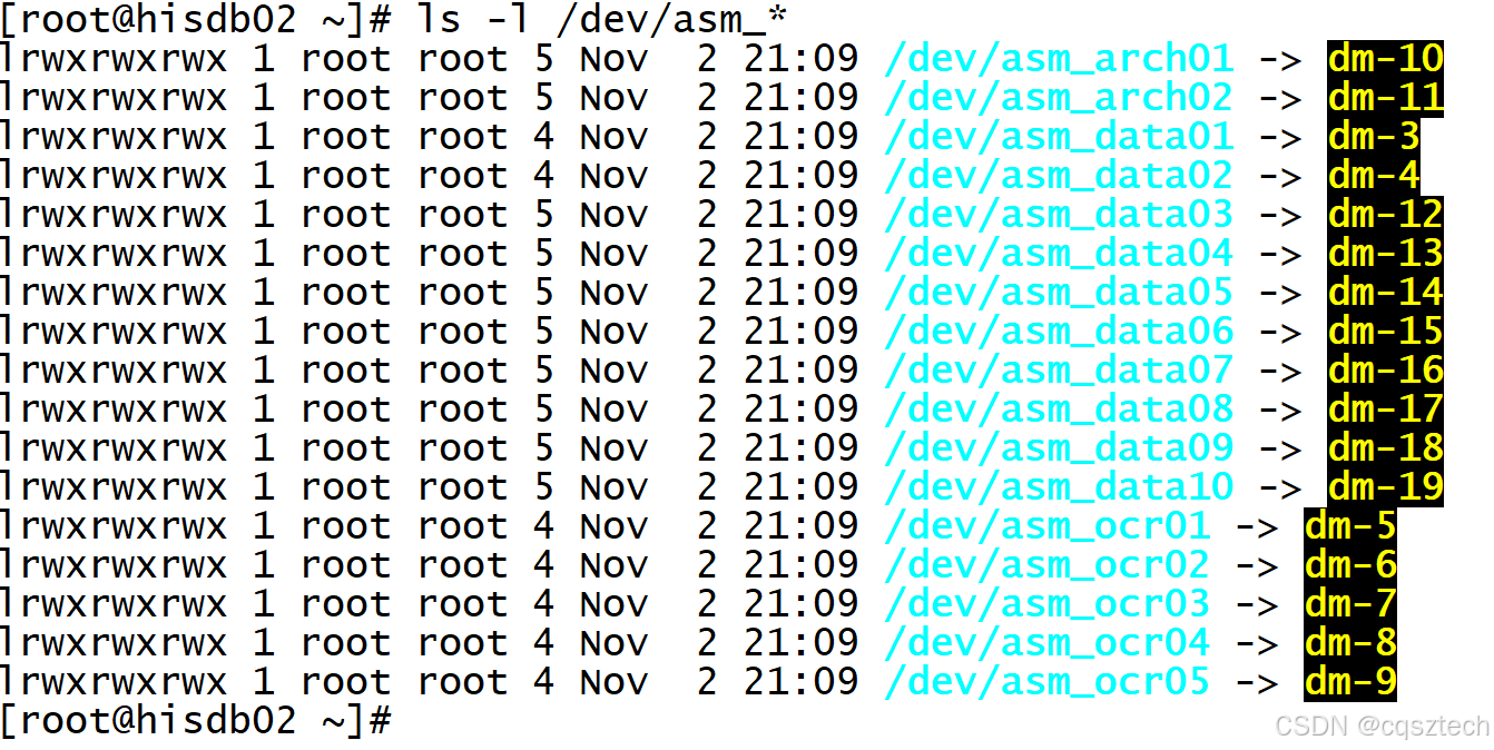 lrwxrwxrwx 1 root root 7 Nov 2 20:51 ocr02 -> ../dm-6