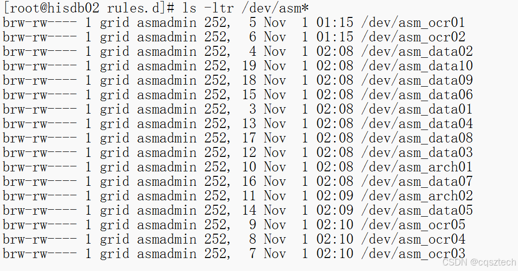 KERNEL=="sd*",ENV{DM_UUID}=="mpath-3600b3421d5636d466cec8ee73f00003b",SYMLINK+="asm_data04",OWNER="grid",GROUP="asmadmin",MODE="0660"