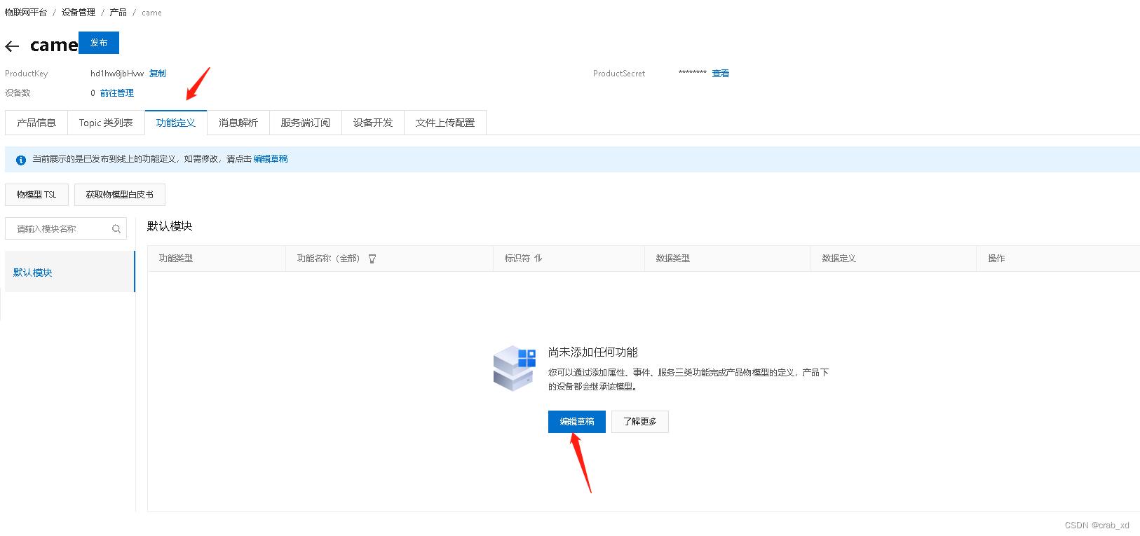添加完功能之后点击“发布上线”,此时才能正常使用。